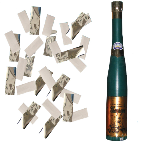 Μπουκάλι κομφετί 60 cm με λευκό χαρτί & ασημί glitter.